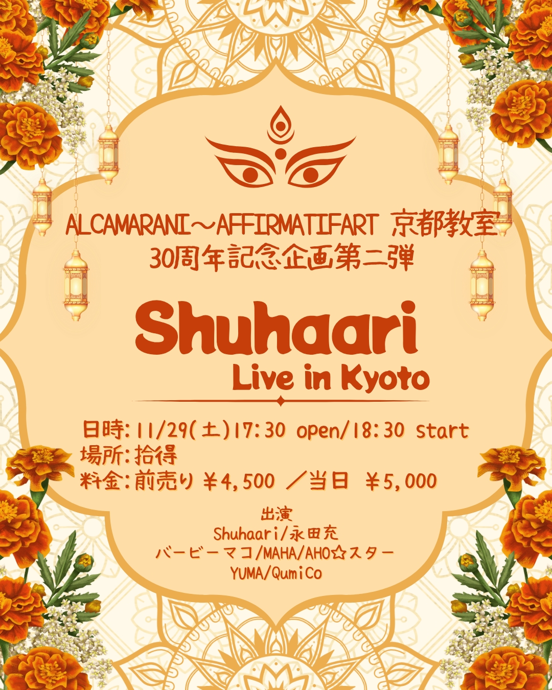 ALCAMARANI~Affirmatifart 京都教室30周年記念企画第二弾 Shuhaari LIVE in KYOTO